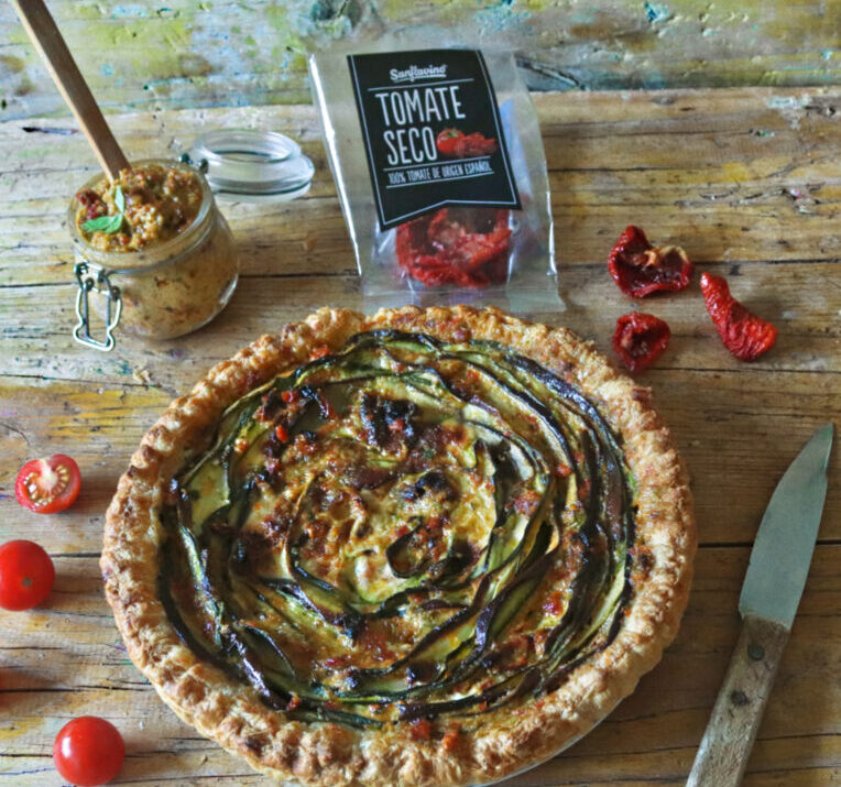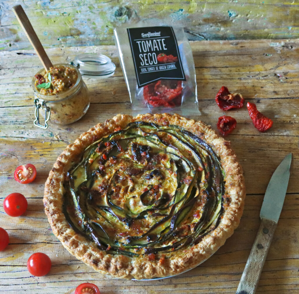 Para servir pincelamos un poco del pesto sobre la Tarta de Verduras.